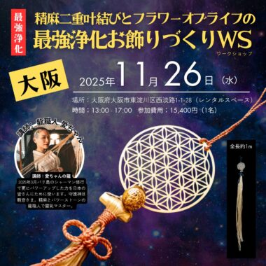 【大阪】11月26日(水)開催!「精麻”二重叶結び”と”フラワーオブライフ”の最強浄化お飾りづくり」