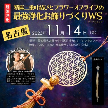 【名古屋】11月14日(金)開催!「精麻”二重叶結び”と”フラワーオブライフ”の最強浄化お飾りづくり」ワークショップ