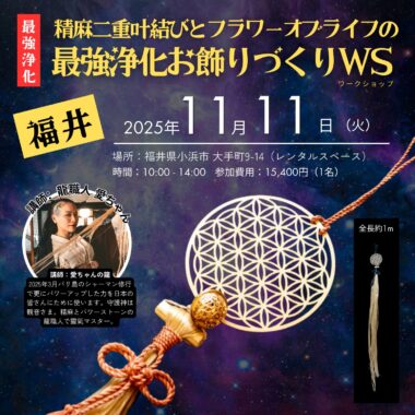 【福井】11月11日(火)開催!「精麻”二重叶結び”と”フラワーオブライフ”の最強浄化お飾りづくり」ワークショップ