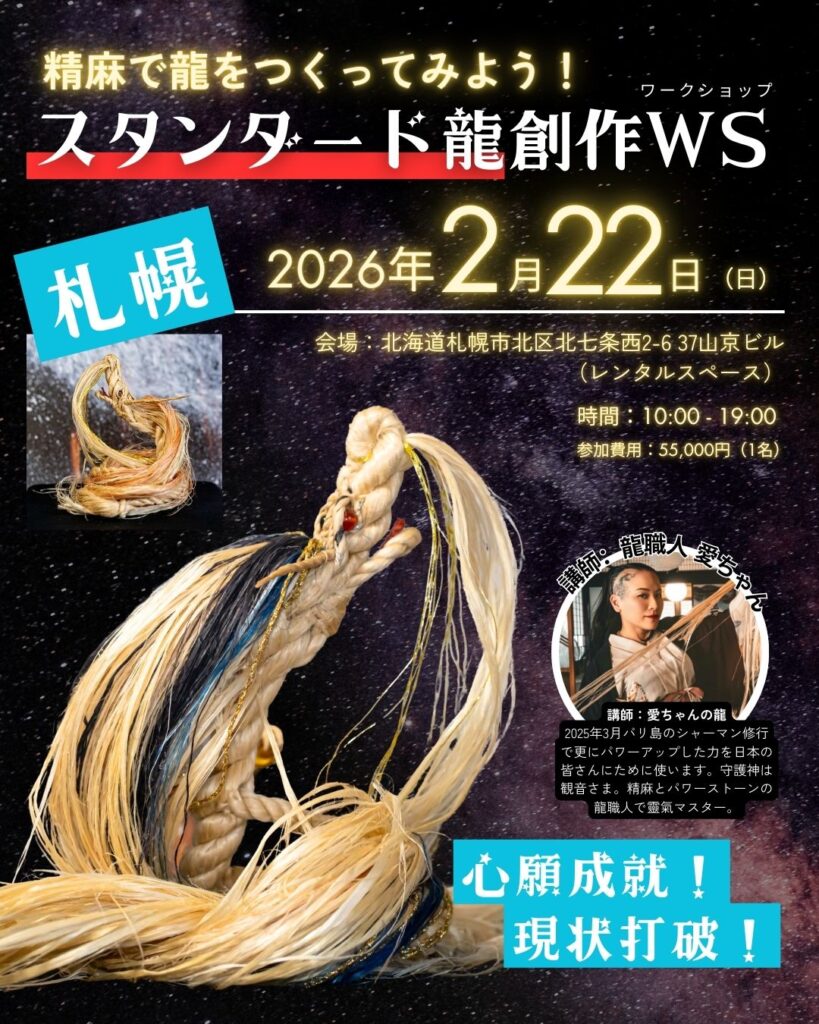 この二つの出会いから生まれる、あなただけのオリジナル精麻龍。 精麻の龍職人 愛ちゃんが、皆様に「創造と癒しの体験」をお届けします。