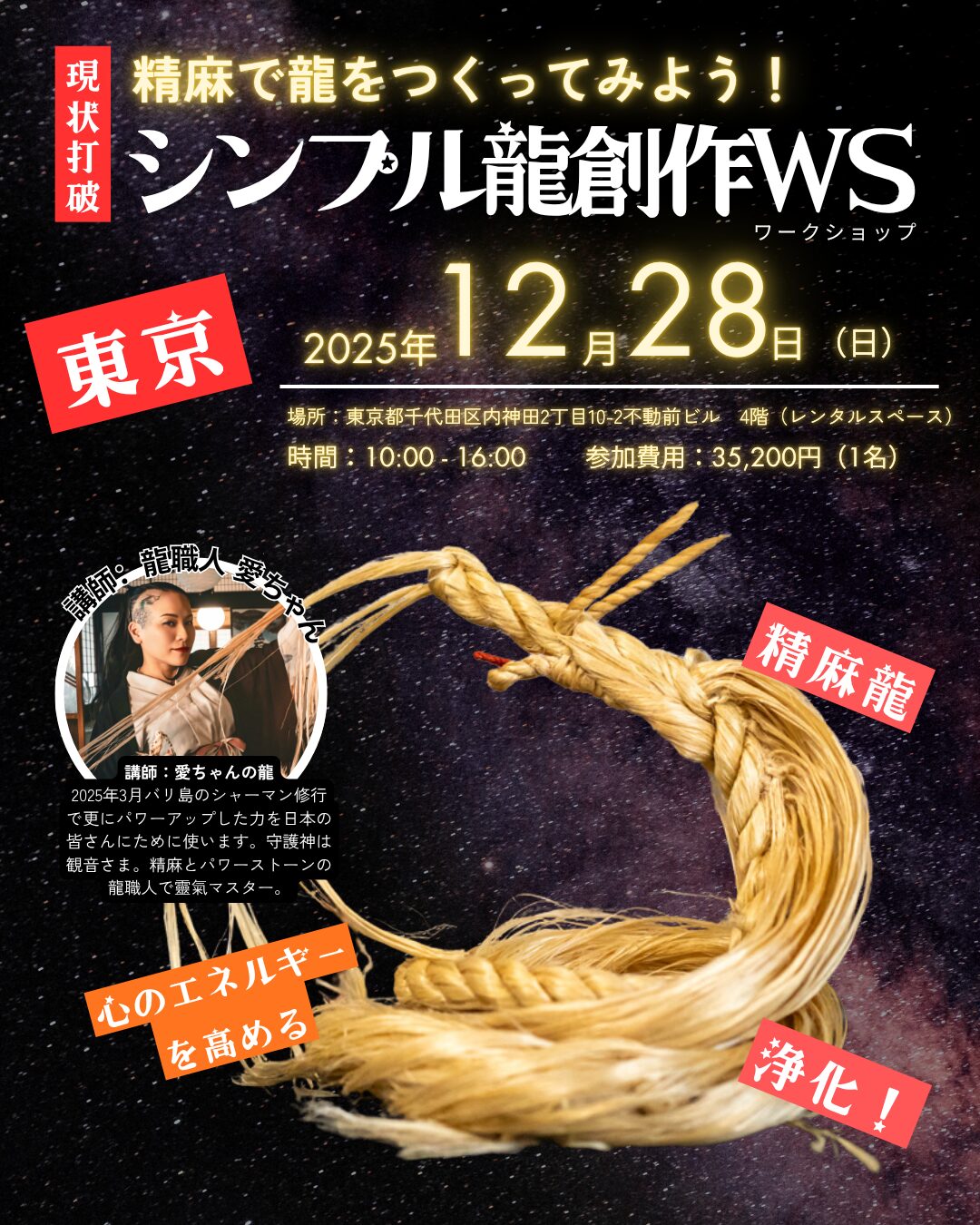 精麻龍ワークショップは、精麻(神聖な麻)を使って「龍」を創る体験型の講座です。
